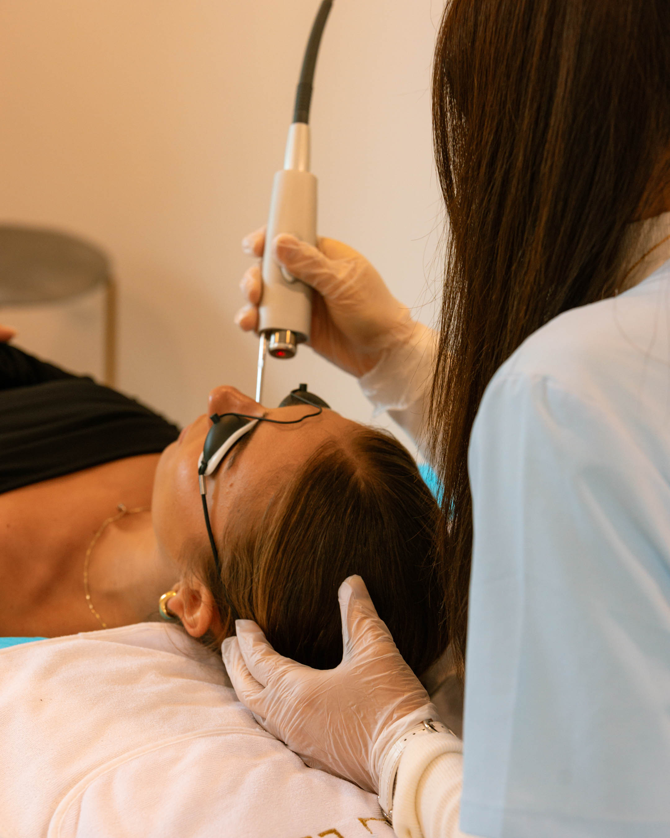 They often ask about the range of services — from facials to laser, skin tightening, head spa, hair regrowth and body contouring, we have treatments from head to toe.